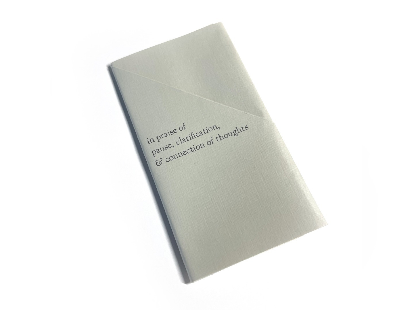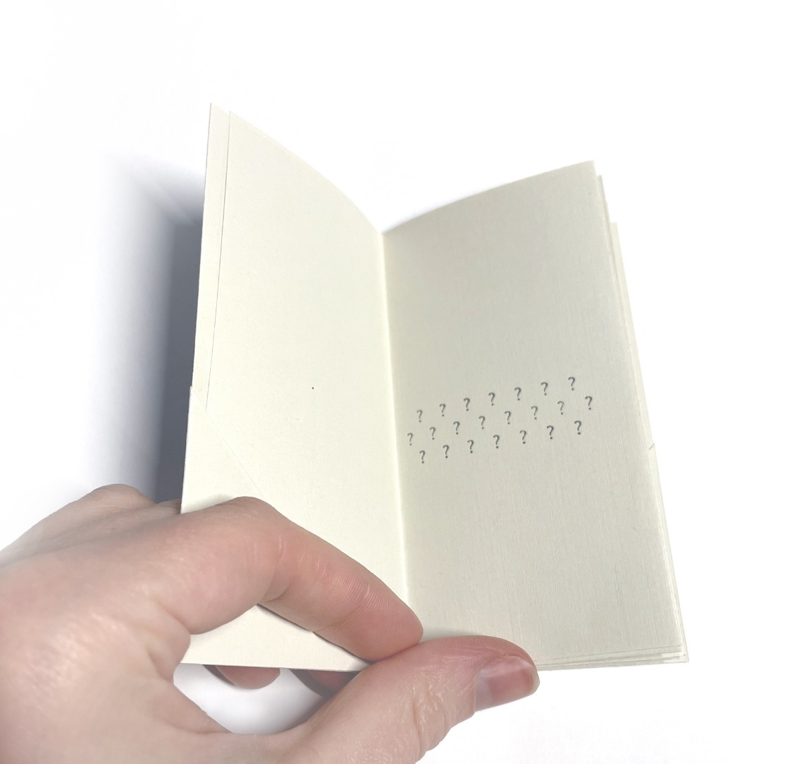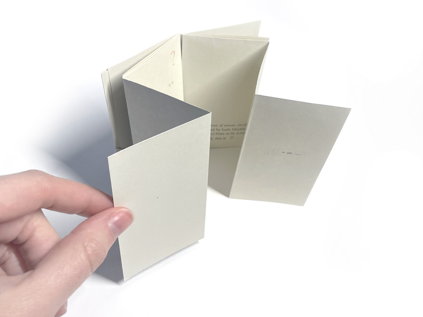 A small collection and celebration of the fourteen punctuation marks used in the English language: period, question mark, exclamation point, semicolon, colon, comma, hyphen, dash, brackets, braces, parentheses, apostrophe, quotation mark, and ellipsis. Letterpress printed from handset metal type at The Printery Book Arts Lab at Central Print in St. Louis, MO. in December 2021.